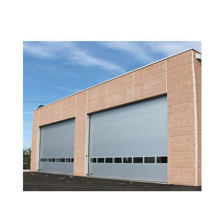 La porte sectionnelle isolée est utilisée en périphérie de bâtiments industriels ou publics afin de réduire les pertes d’énergie. Celle-ci refoule verticalement puis horizontalement sous la toiture, laissant libre tout le volume dans le bâtiment.